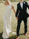 Simple Off White Halter Open Back Wedding Dress WDH063