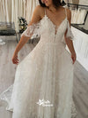 Elegant Appliques Spaghetti Straps Tulle Wedding Dress WDH069