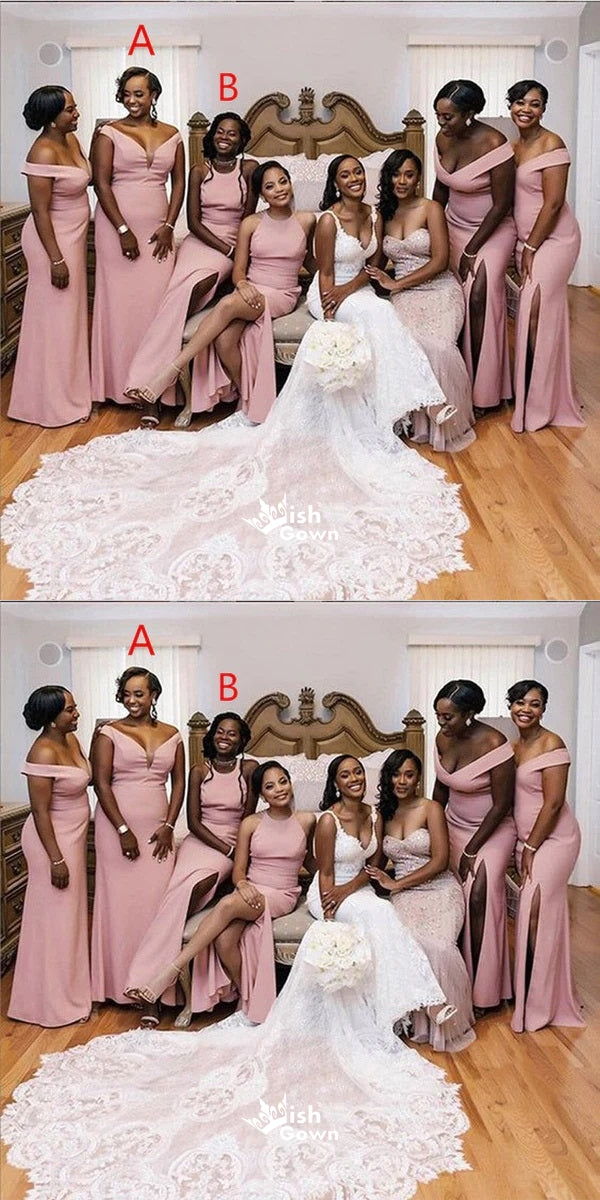 Mismatched Sexy Pink Mermaid Side Slit Maxi Long Bridesmaid Dresses Online, WGM140