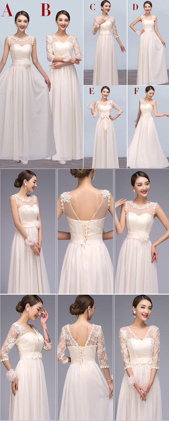 Mismatched Chiffon Lace Champagne Long Different Styles Cheap Floor-Length Bridesmaid Dresses, WG121