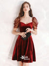 Puff Sleeves Sweetheart Red Velvet Knee-length Freshman Graduation Homecoming Dress, WGP040