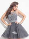 Light Gray Halter Rhinestone Sparkly Open Back Tulle Short Freshman Ho