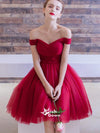 Burgundy A-line Tulle Off The Shoulder Prom Party Dress Homecoming Dress, WGP024