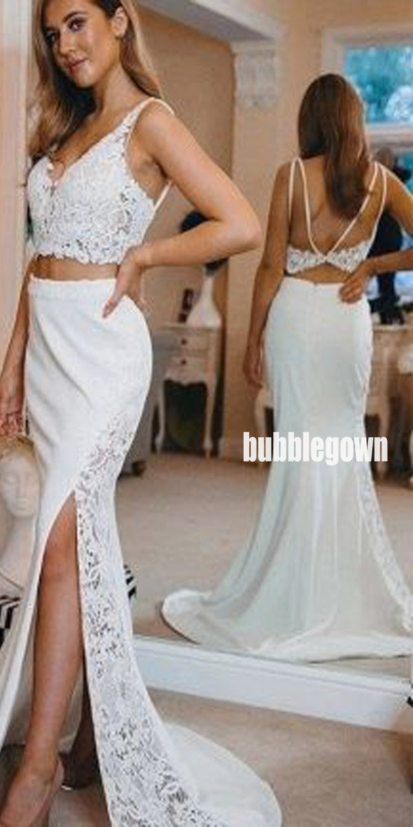Two Piece V-neck Split Side Long Wedding Dress WDH043