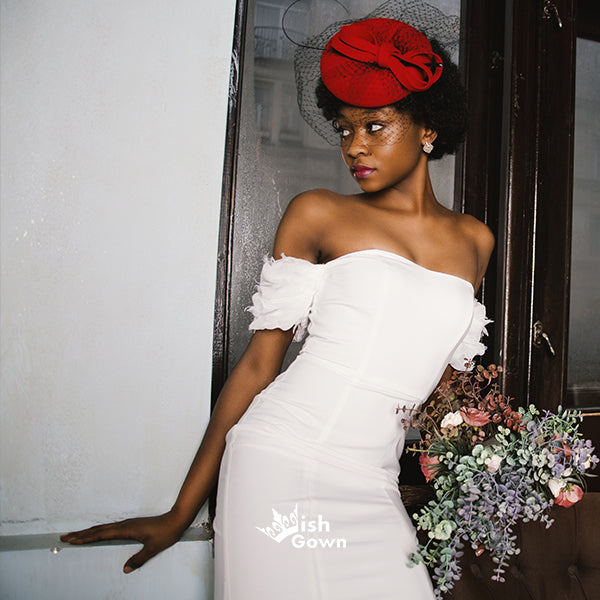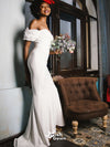 Chic White Off-shoulder Mermaid Long Wedding Dress, WGB002