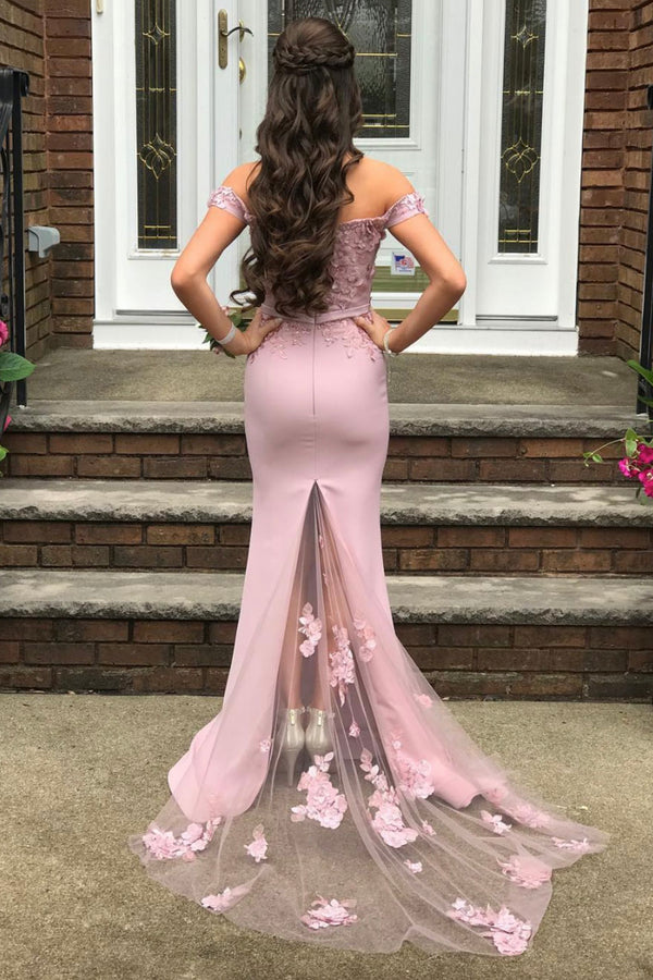 Elegant Pink Off-Shoulder Sleeveless Mermaid Long Prom Dress Ideas, Evening Party Dresses, WGP1901