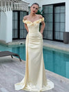 Elegant Yellow Floral Off-Shoulder Mermaid Long Prom Dress Ideas, Evening Party Dresses ,WGP1605