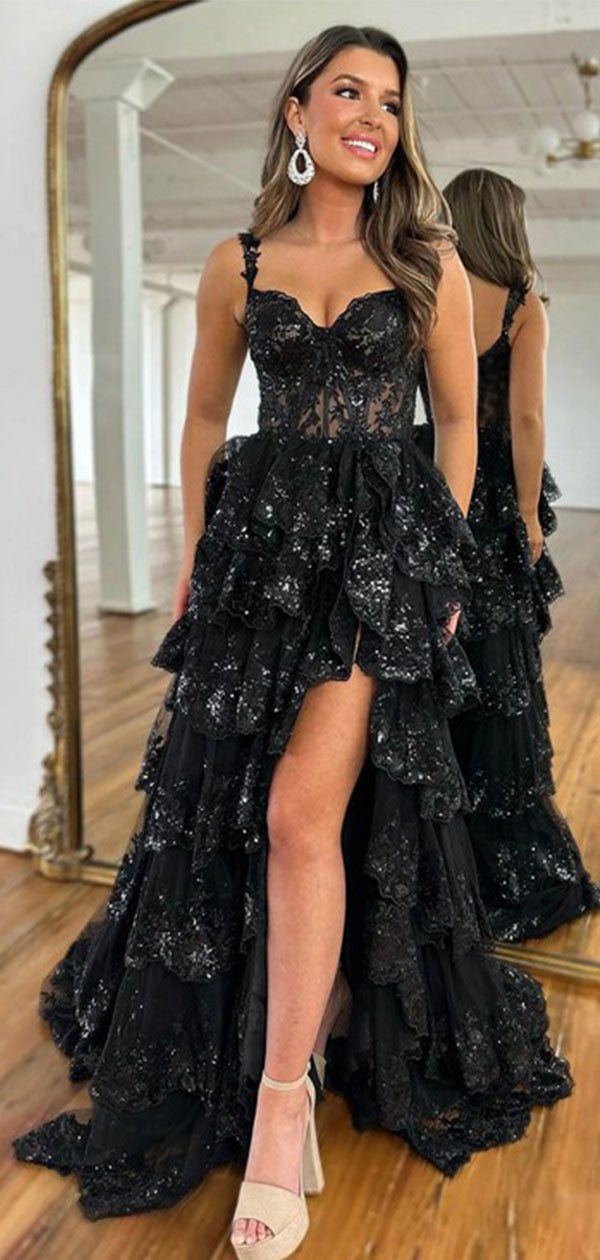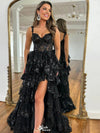 Sexy Black Spaghetti Strap High Low Long Prom Dress Ideas, Evening Party Dresses, WGP1593