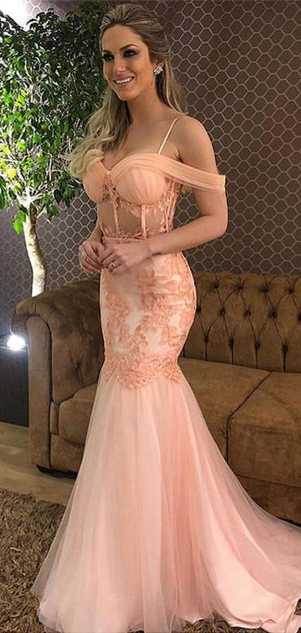 Sexy Pink Off-Shoulder Mermaid Long Prom Dress Ideas, Evening Party Dr