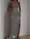 Shiny Silver Sweetheart Mermaid Side Slit Long Prom Dress Ideas, Evening Party Dresses,WGP1876