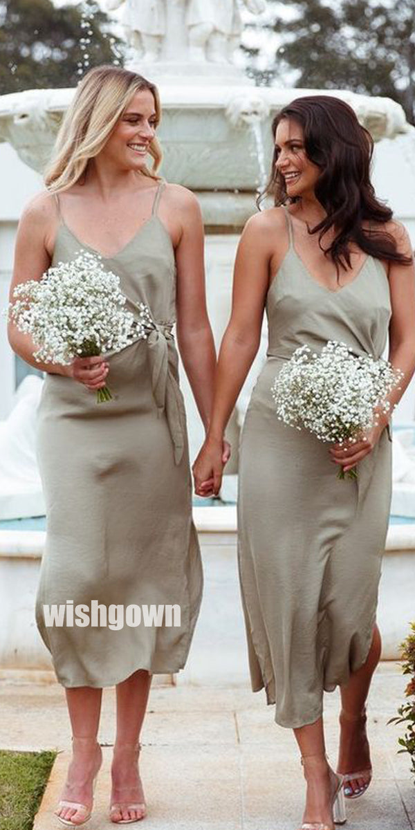 Elegant Spaghetti Strap Chiffon Knee-length Bridesmaid Dresses, YPS150