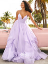 Lavender Organza Spaghetti Strap Ball Gown Low Back Lace Up Evening Long Prom Dresses, WGP079