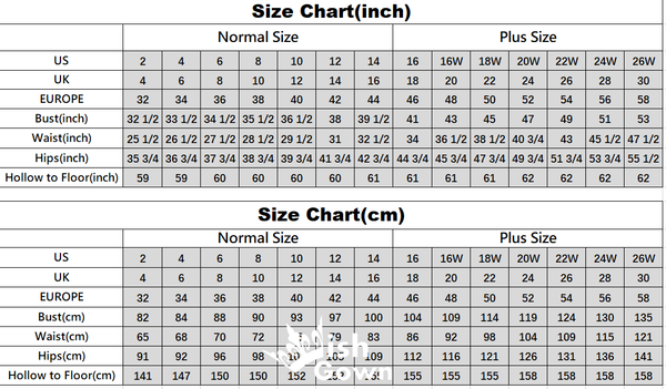 | US Size | UK Size | Bust | Waist | Hips | Hollow to Floor With Shoes On |