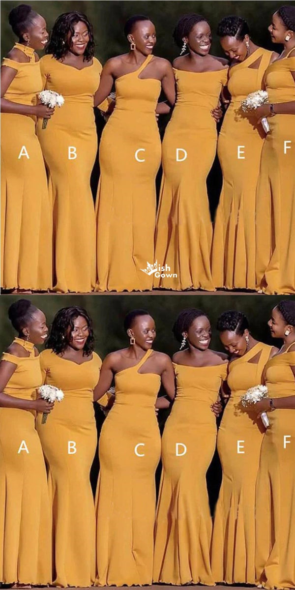 Mismatched Simple Yellow Mermaid Long Bridesmaid Dresses Online, WGM15