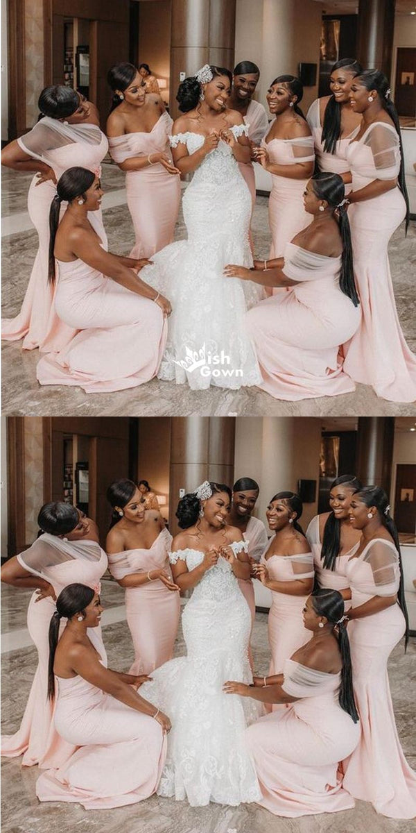Sexy Mermaid Light Pink Off Shoulder Maxi Long Bridesmaid Dresses, WGM